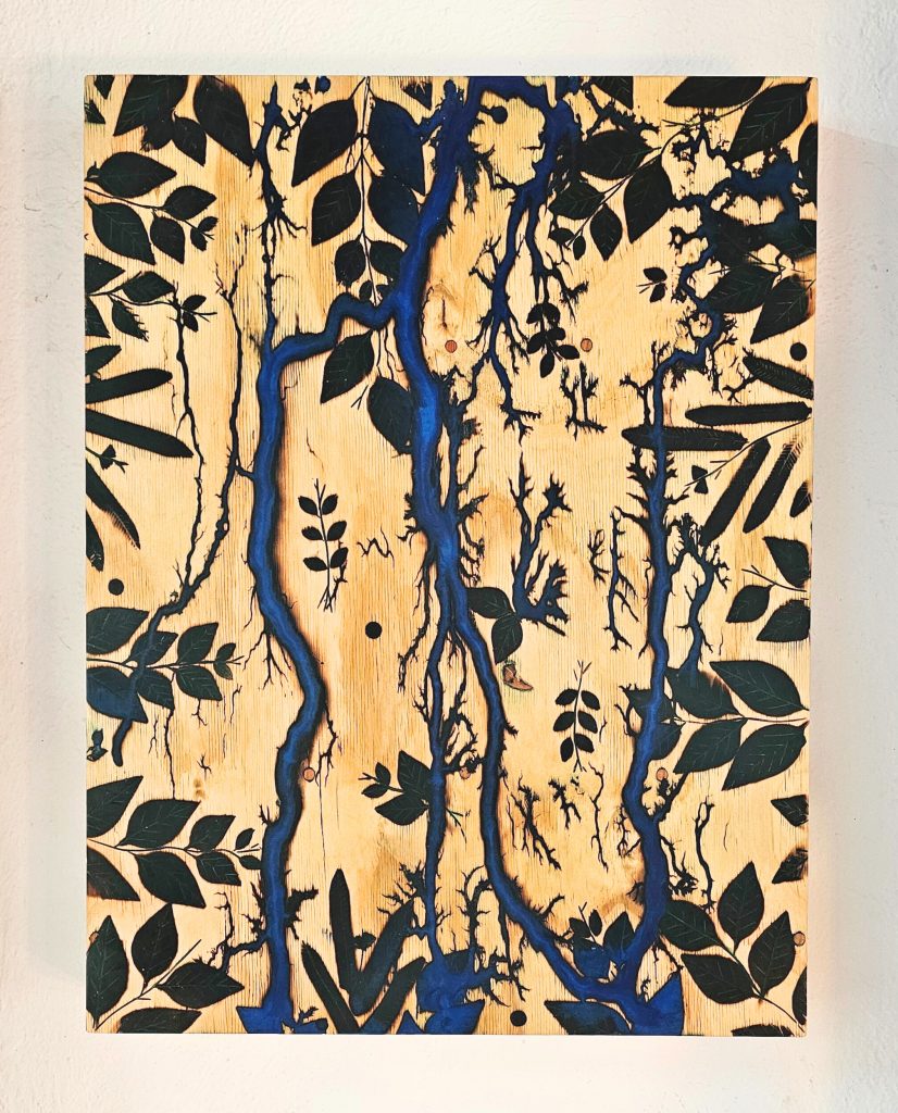 Técnica: Pirograbado eléctrico sobre madera.